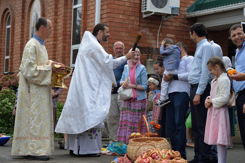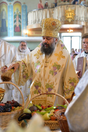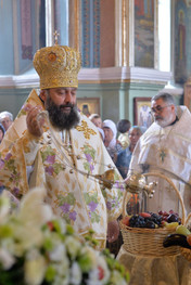По заамвонной молитве было совершено освящение винограда и различных плодов.