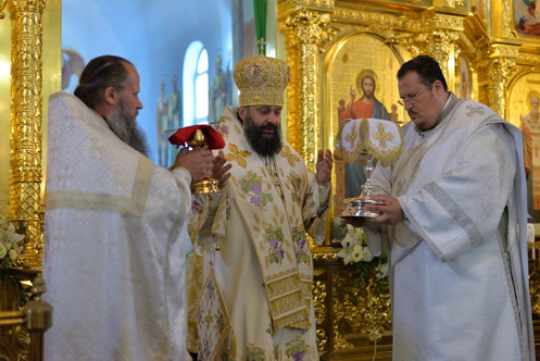 Перед началом Литургии владыка Тихон совершил освящение новых икон для соборного иконостаса.