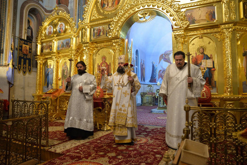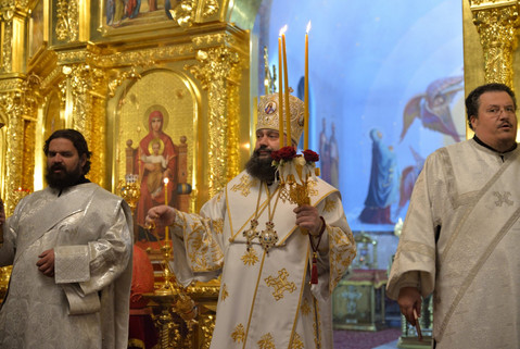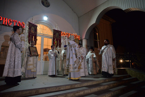 По прочтении Евангелия Управляющий епархией огласил Пасхальное послание Святейшего Патриарха КИРИЛЛА архипастырям, пастырям, монашествующим и всем верным чадам Русской Православной Церкви.