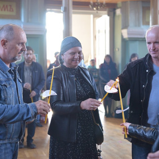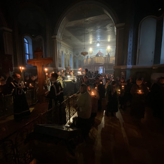 По традиции чтение Евангелий совершается на середине храма, во время которого прихожане стоят с возженными свечами.