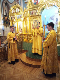 Позднюю Божественную Литургию возглавил Настоятель Свято-Троицкого кафедрального собора архимандрит Антоний (Яворский) в сослужении архимандрита Никона (Пипинеева), протоиерея Олега Горбачёва и диакона Василия Никифорова. На сугубой ектении были вознесены прошения о единстве Православной Церкви и сохранении мира на братской Украине.