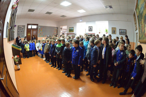 Под праздничный колокольный звон ученики гимназии с учителями, неся хоругвь преподобного Сергия Радонежского, совершили Крестный ход к своему учебному заведению, где их ждал праздничный концерт и посвящение первоклашек в гимназисты.