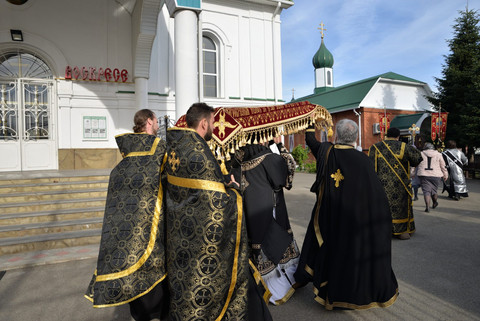 После великого славословия с пением погребального «Святый Боже» был совершен крестный ход с Плащаницей вокруг Свято-Троицкого кафедрального собора.