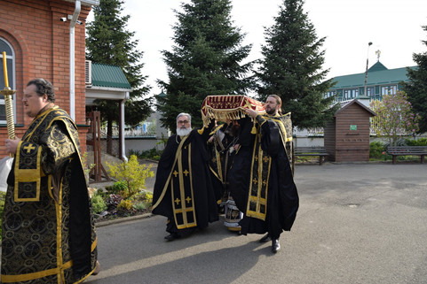 17 апреля, в Великую пятницу Страстной седмицы, Высокопреосвященнейший Тихон, архиепископ Майкопский и Адыгейский, совершил утреню с чином погребения Господа нашего Иисуса Христа в храме преподобного Сергия Радонежского при Свято-Троицком кафедральном соборе города Майкопа.